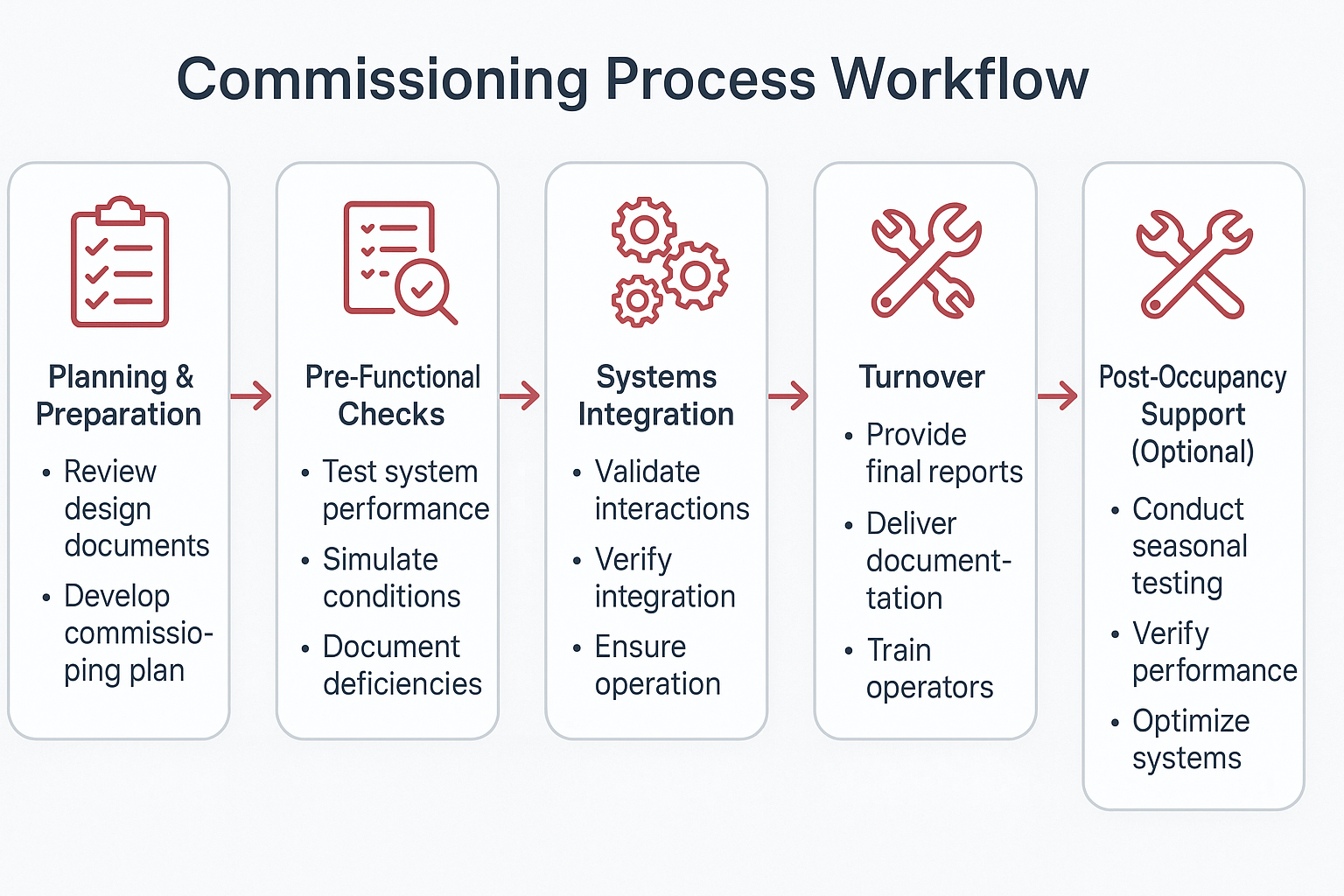 Commissioning is more than just testing equipment, it’s about verifying performance, minimizing risks, and ensuring long-term reliability. With our process-driven approach, we help owners and contractors: